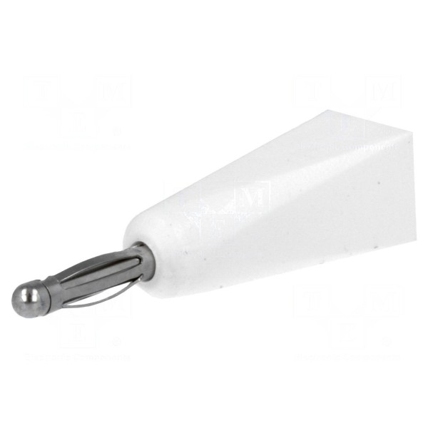 Złącze typu wtyk bananowy o średnicy 2mm przeznaczone jest do zastosowań laboratoryjnych. Element charakteryzuje się prądem znamionowym wynoszącym 5A oraz wykonaniem w kolorze białym.