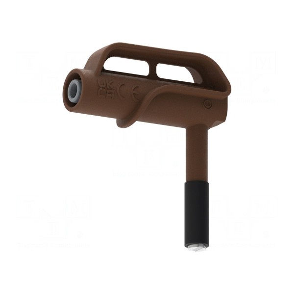 Adapter magnetyczny o prądzie znamionowym 4A przeznaczony jest do współpracy z przyrządami pomiarowymi. Urządzenie wyposażono w końcówkę o średnicy 6,6mm oraz gniazdo o rozmiarze 4mm, co umożliwia stabilne połączenie w punktach pomiarowych. Kolor obudowy elementu to brązowy.
