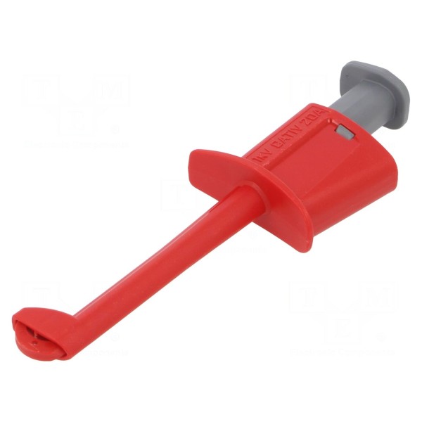 Chwytak pomiarowy haczykowy 20A, 1kV, kolor czerwony