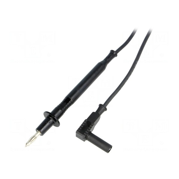 Przewód pomiarowy o długości 1m i przekroju 1mm² zaprojektowano do pracy pod napięciem znamionowym 1kV oraz prądem znamionowym 20A. Konstrukcja elementu obejmuje wtyk bananowy 4mm oraz końcówkę pomiarową, obie wyposażone w osłony poprawiające bezpieczeństwo użytkowania. Wersja akcesoriów została wzbogacona o nasadkę zapobiegającą zwarciom.