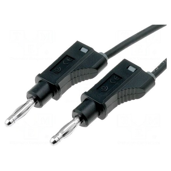 Przewód pomiarowy o długości 2 metrów wyposażony w wtyki bananowe 4mm umieszczone po obu stronach. Konstrukcja złącza obejmuje dodatkowe gniazdo osiowe 4mm, co umożliwia łatwe łączenie elementów pomiarowych. Przewód o przekroju 1mm² zapewnia stabilną transmisję sygnału w układach pomiarowych.