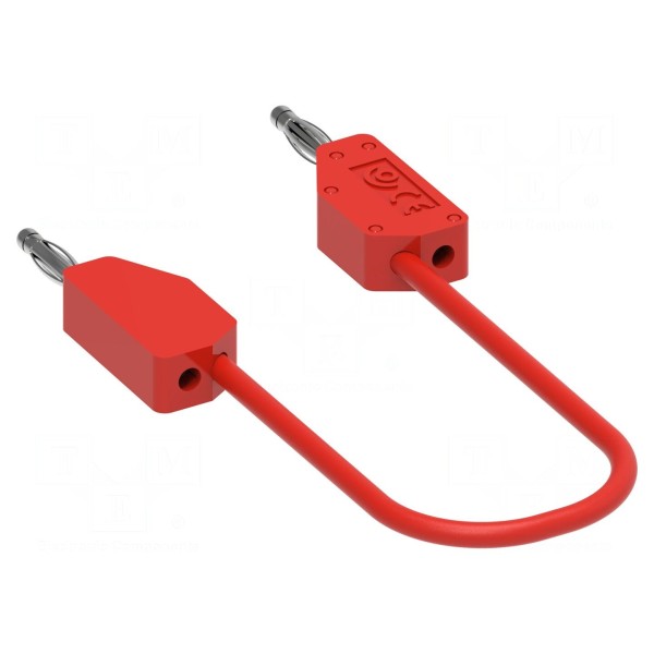 Konstrukcja produktu opiera się na żyłach o przekroju 0,4 mm² w izolacji wykonanej z PVC. Przewód zakończony jest obustronnie wtykiem bananowym o średnicy 2 mm, co pozwala na stabilne połączenie w układach pomiarowych. Element wyróżnia się czerwonym kolorem izolacji zewnętrznej.