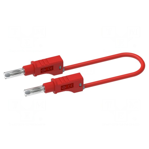 Wyposażenie obejmuje obustronne wtyki bananowe 4mm w wersji izolowanej, które dodatkowo posiadają gniazda osiowe 4mm. Produkt przystosowany jest do pracy w warunkach temperatury otoczenia od -20 do 80°C i charakteryzuje się czerwonym kolorem izolacji.