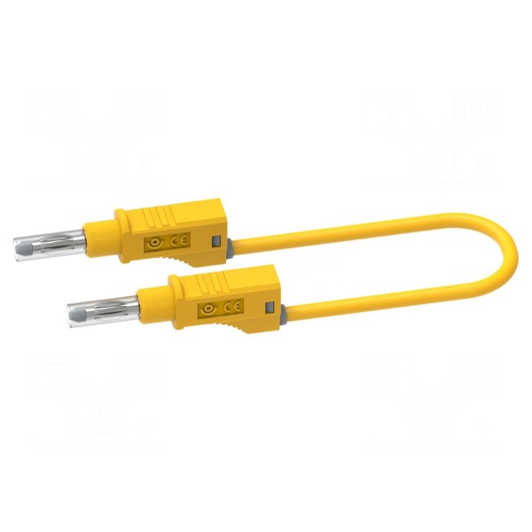 Element charakteryzuje się prądem znamionowym 12 A oraz napięciem znamionowym 0,6 kV. Zakres dopuszczalnych temperatur pracy urządzenia wynosi od -20 do 80°C. Przewód w kolorze żółtym jest zgodny z normą EN 61010 i spełnia wymagania kategorii bezpieczeństwa CAT II 600 V.