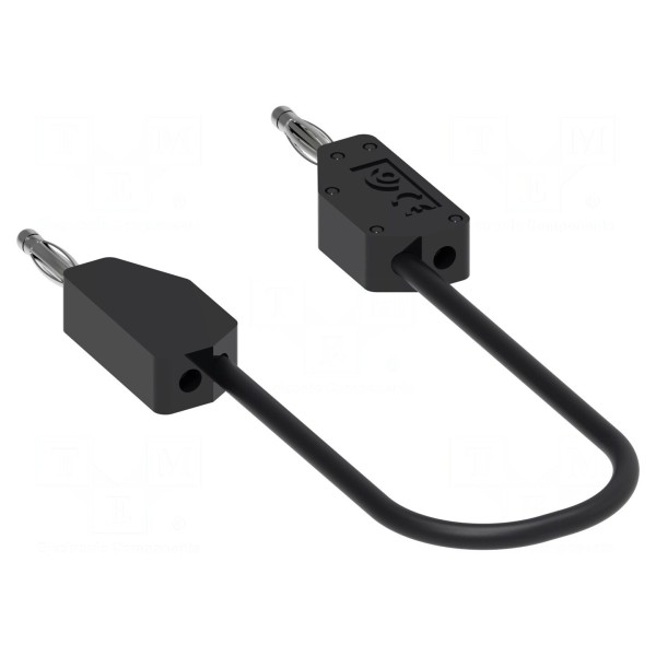 Parametry pracy akcesorium obejmują napięcie znamionowe do 30 V AC oraz 60 V DC. Produkt dostępny jest w kolorze czarnym, co pozwala na łatwą identyfikację połączeń w układach pomiarowych. Wykorzystanie wtyków bananowych 2 mm umożliwia sprawne podłączenie do standardowych gniazd laboratoryjnych oraz przyrządów pomiarowych.