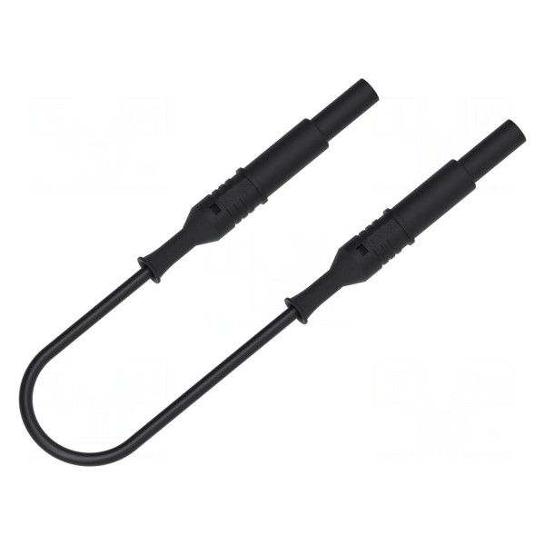 Przewód pomiarowy o długości 0,5 m wyposażony jest obustronnie we wtyki bananowe 4 mm. Model ten posiada izolowane złącza oraz przewód o przekroju 0,75 mm², którego izolację zewnętrzną wykonano z tworzywa PVC w kolorze czarnym.