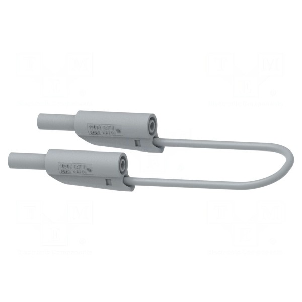 Z obu stron zastosowano wtyki bananowe o średnicy 4 mm w wersji izolowanej, wyposażone w dodatkowe gniazdo osiowe. Produkt wykończony jest w kolorze szarym i charakteryzuje się wysokim stopniem bezpieczeństwa, potwierdzonym zgodnością z normami EN 61010-031 oraz EN 60529.