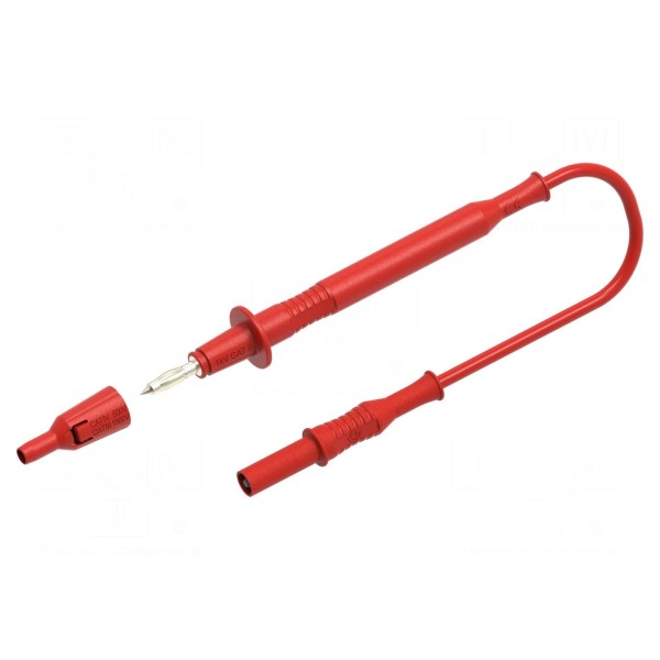 Przewód pomiarowy o prądzie znamionowym 36A został wyposażony w końcówkę pomiarową oraz wtyk bananowy 4mm. Elementy stykowe posiadają powłokę niklowaną, co zapewnia odpowiednie parametry połączeniowe w codziennych pracach laboratoryjnych.