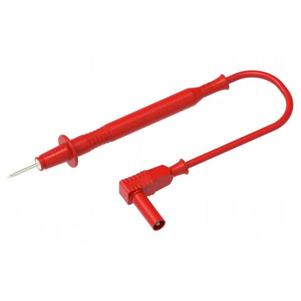 Izolację zewnętrzną przewodu stanowi silikon, co wpływa na jego elastyczność podczas eksploatacji. Produkt spełnia wymagania normy bezpieczeństwa CAT II 1000 V. Całość konstrukcji utrzymana jest w kolorze czerwonym.