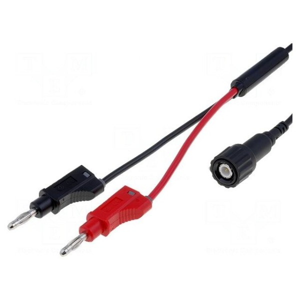 Przewód pomiarowy o długości 1 m wyposażony we wtyk BNC oraz dwa wtyki bananowe 4 mm. Konstrukcja charakteryzuje się impedancją wynoszącą 50 Ω oraz posiada wtyk bananowy z gniazdem 4 mm.