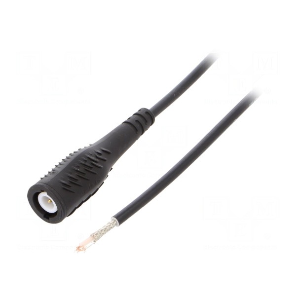 Przewód pomiarowy o długości 1 m wyposażony został w złącze wtyk BNC oraz wolną końcówkę, co umożliwia bezpośrednią integrację z aparataturą pomiarową. Konstrukcja przewodu zapewnia stabilną transmisję sygnałów przy zachowaniu parametrów elektrycznych odpowiednich dla napięć 30 V AC oraz 60 V DC.
