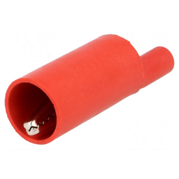 Zacisk krokodylkowy 10A, gniazdo 4mm, kolor czerwony
