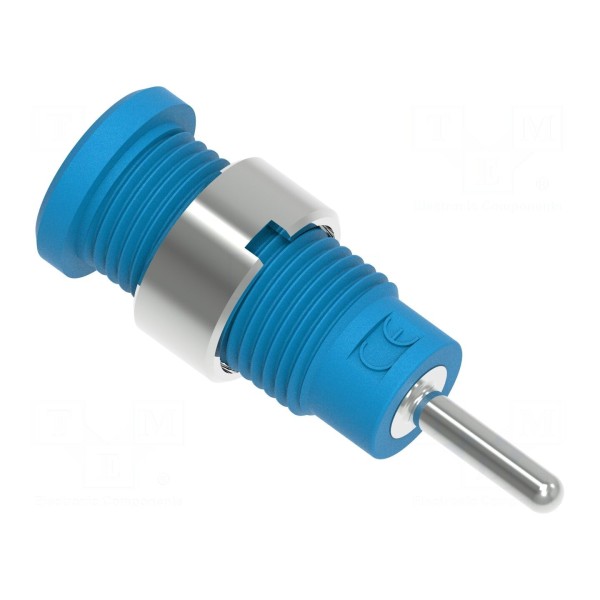 Montaż złącza odbywa się poprzez wtyk pin o wymiarach 2mm x 9mm. Produkt utrzymany jest w kolorze niebieskim, co ułatwia identyfikację poszczególnych torów w układach pomiarowych.