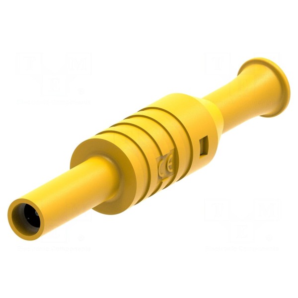 Obudowa gniazda dostępna jest w kolorze żółtym, co ułatwia identyfikację poszczególnych torów w układach laboratoryjnych. Konstrukcja złącza pozwala na stabilny montaż w urządzeniach pomiarowych i tablicach testowych.