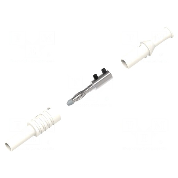 Złącze laboratoryjne w formie wtyku bananowego o średnicy 4mm przeznaczone jest do pracy z prądem znamionowym do 36A. Element został wykonany z mosiądzu z niklowaną powłoką styku, co zapewnia stabilność połączenia. Konstrukcja złącza jest w pełni izolowana, co pozwala na bezpieczne użytkowanie w instalacjach zgodnych z normą CAT III 1000V.