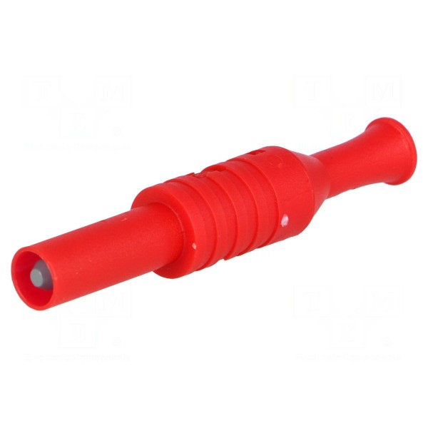 Wtyk bananowy 4mm, 36A, 1kV AC, izolowany, czerwony