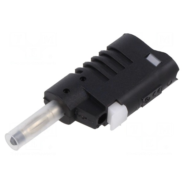 Złącze laboratoryjne typu wtyk bananowy 4mm przeznaczone jest do połączeń elektrycznych w układach o napięciu znamionowym do 30V AC oraz 60V DC. Komponent charakteryzuje się obciążalnością prądową na poziomie 36A. Wersja złącza obejmuje izolowaną konstrukcję wyposażoną w dodatkowe gniazdo osiowe 4mm, co umożliwia kaskadowe łączenie przewodów.