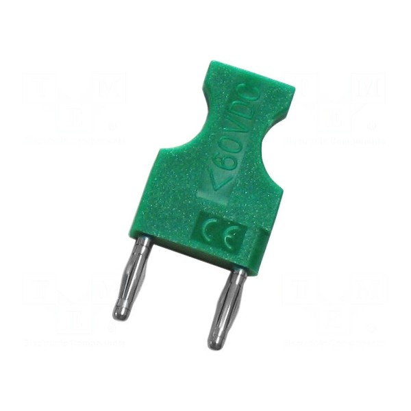 Element został wykonany z mosiądzu z niklowanym pokryciem styku, co zapewnia parametry przewodzenia. Konstrukcja posiada izolację, a długość całkowita złącza wynosi 34 mm. Produkt występuje w kolorze zielonym.