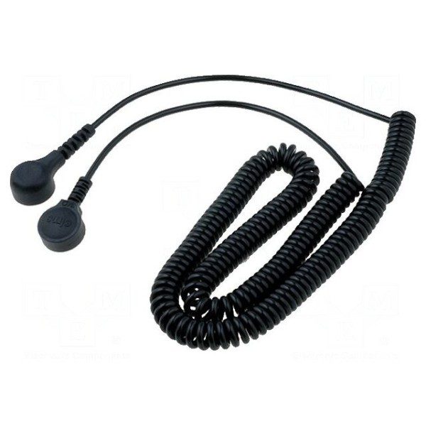 Przewód łączeniowy typu ESD w wersji spiralnej przeznaczony jest do zapewnienia ciągłości uziemienia w stanowiskach chronionych przed wyładowaniami elektrostatycznymi. Element posiada rezystancję 1MΩ, co zapewnia bezpieczne odprowadzanie ładunków elektrycznych do punktu uziemienia.