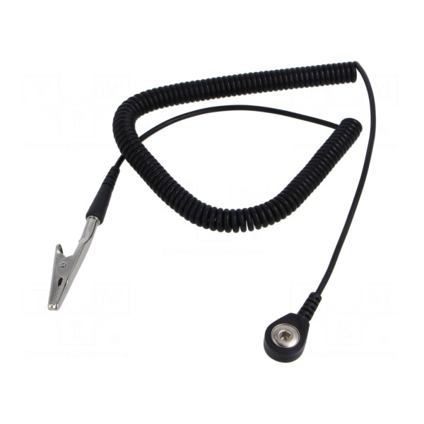 Element przeznaczony jest do podłączania mat ESD oraz opasek ESD do punktu uziemienia. Zastosowanie przewodu umożliwia skuteczne utrzymanie potencjału ziemi w chronionych strefach antystatycznych.