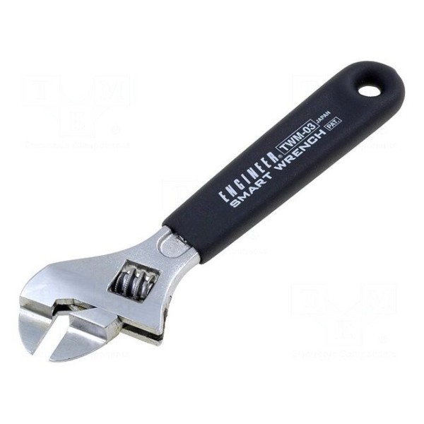 Klucz nastawny ENGINEER TWM-03 to narzędzie o całkowitej długości 155 mm. Konstrukcja modelu charakteryzuje się szczękami o grubości 2 mm, co pozwala na dostęp do elementów złącznych w miejscach o ograniczonej przestrzeni.
