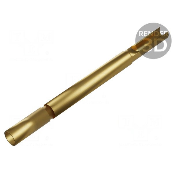Konstrukcja gniazda wykonana jest z brązu, a styk został wykończony warstwą złota. Komponent posiada główkę o kształcie SR.