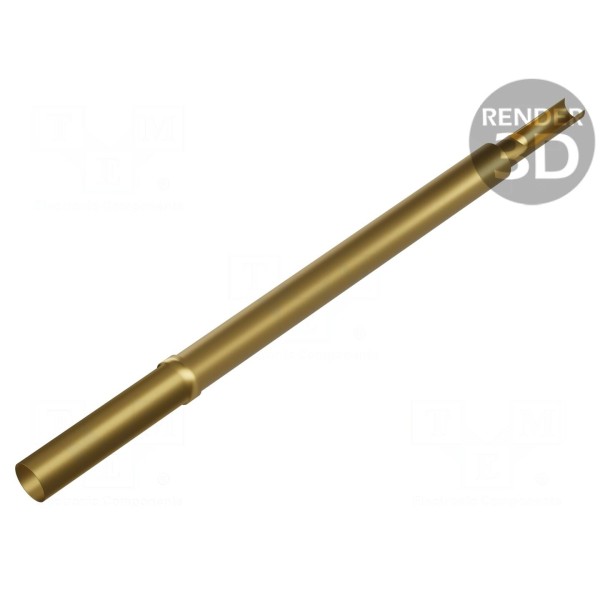Styk wykonano z mosiądzu, który został poddany procesowi złocenia w celu wykończenia powierzchni. Konstrukcja elementu jest przystosowana do współpracy z końcówkami typu SR.