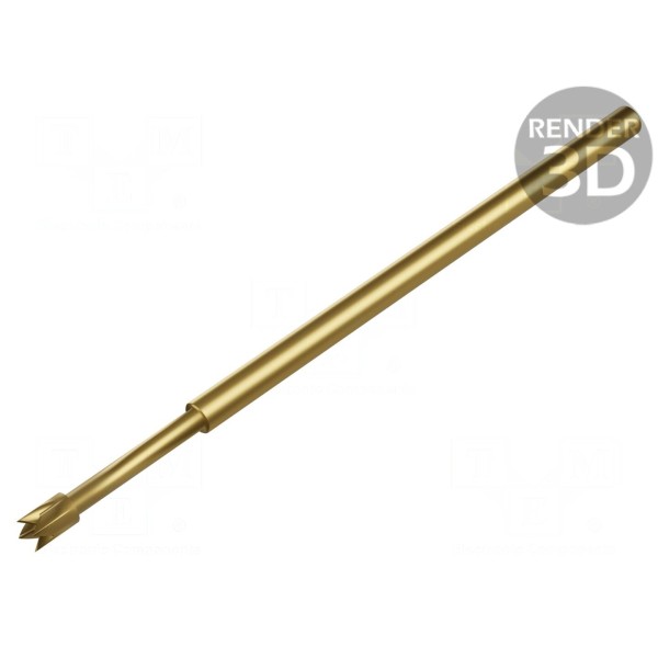 Igła testowa EQUIP-TEST ST1000 CA56 N przeznaczona jest do precyzyjnych pomiarów w układach o rastrze wynoszącym co najmniej 2,54mm. Element wyposażony jest w końcówkę o średnicy 1,3mm w kształcie główki CA, wykonaną ze stali i pokrytą warstwą złota, co zapewnia dobrą przewodność oraz rezystancję styku na poziomie maksymalnie 20mΩ.