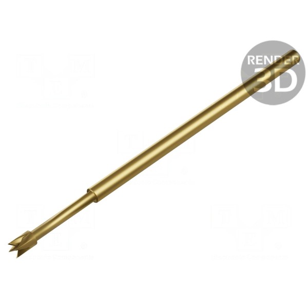 Igła testowa z końcówką typu główka CC o średnicy 1,3mm przeznaczona jest do precyzyjnych pomiarów w układach o minimalnym rastrze wynoszącym 2,54mm. Element wykonano ze stali z pokryciem złoconym, co zapewnia rezystancję styku na poziomie maksymalnie 20mΩ przy prądzie znamionowym 8A.