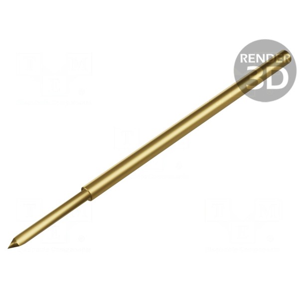 Konstrukcja wykonana jest ze stali z wykończeniem złoconym. Całkowita długość igły wynosi 33,4mm, a minimalny raster montażowy to 2,54mm. Komponent przystosowany jest do pracy w zakresie temperatur od -40°C do 120°C.