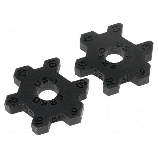 Element stanowi wymienny komponent systemu zaciskowego narzędzia ER-PR50, umożliwiając pracę z przewodami o przekroju od 6mm² do 50mm². Zastosowanie wymiennych matryc pozwala na dopasowanie narzędzia do konkretnych wymagań technicznych podczas procesu zaciskania.