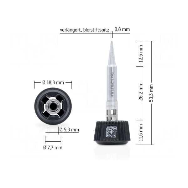 Grot do lutownic grzałkowych o kształcie szpilki przeznaczony jest do stacji lutowniczych. Element charakteryzuje się średnicą końcówki wynoszącą 0,8mm.
