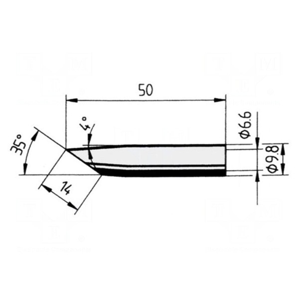 Grot przeznaczony jest do wykorzystania z lutownicami grzałkowymi. Element charakteryzuje się kształtem ściętego stożka o wymiarze 14 mm, co umożliwia precyzyjne prowadzenie prac lutowniczych na podzespołach elektronicznych.