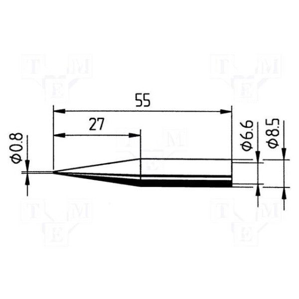 Grot przeznaczony jest do wykorzystania w lutownicach grzałkowych oraz stacjach lutowniczych. Element charakteryzuje się kształtem stożkowym o średnicy końcówki wynoszącej 0,8mm.