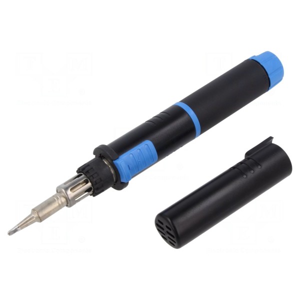 Lutownica gazowa o mocy 130W zasilana butanem. Urządzenie pozwala na osiągnięcie temperatury grota do 580°C, zapewniając czas pracy ciągłej wynoszący 120 minut na jednym napełnieniu zbiornika.