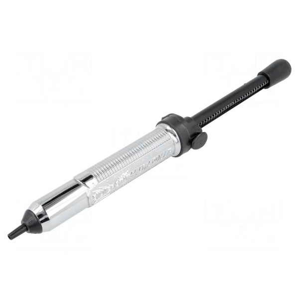Odsysacz lutowniczy przeznaczony jest do usuwania nadmiaru spoiwa lutowniczego z punktów połączeń na płytkach drukowanych. Narzędzie zostało wykonane w wersji ESD, co pozwala na bezpieczne stosowanie go w środowiskach chronionych przed wyładowaniami elektrostatycznymi.