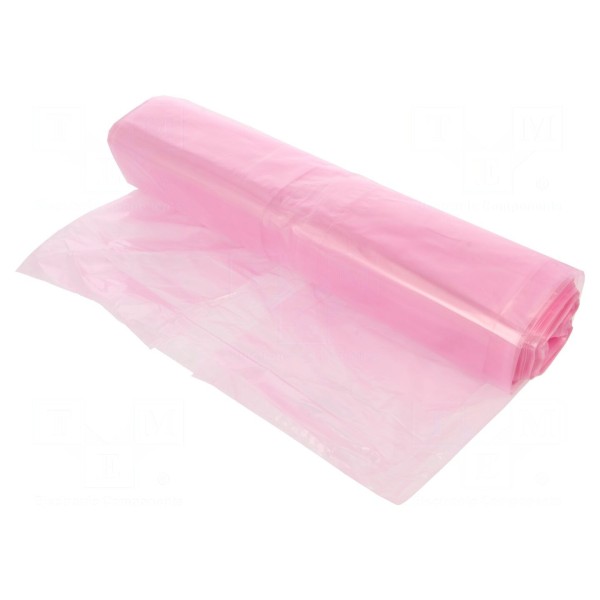 Torba na śmieci ESD o pojemności 15 litrów wykonana jest z materiału LDPE w kolorze różowym. Produkt charakteryzuje się właściwościami rozpraszającymi, co potwierdza rezystancja powierzchniowa wynosząca poniżej 100 GΩ.