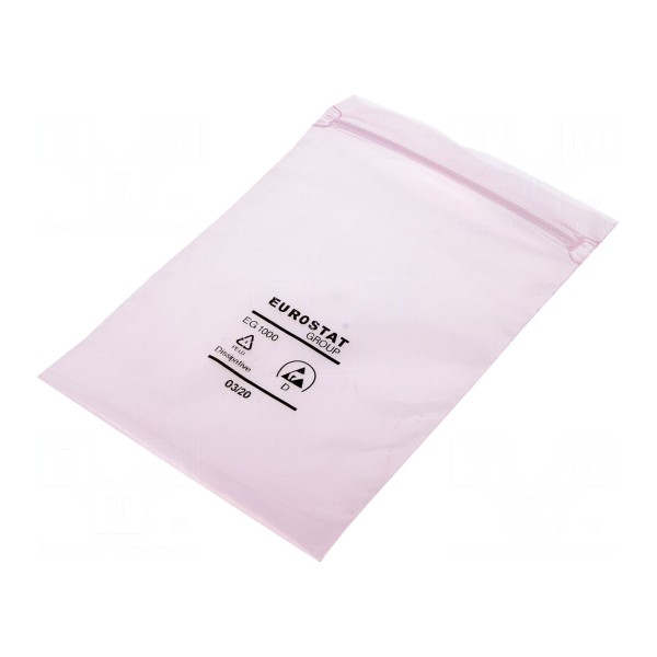 Torebka ochronna ESD wykonana z polietylenu o właściwościach rozpraszających, przeznaczona do zabezpieczania komponentów elektronicznych. Produkt posiada wymiary 305mm długości oraz 254mm szerokości przy grubości ścianki wynoszącej 50µm. Materiał wykończony jest w kolorze różowym i charakteryzuje się rezystancją powierzchniową poniżej 100GΩ.