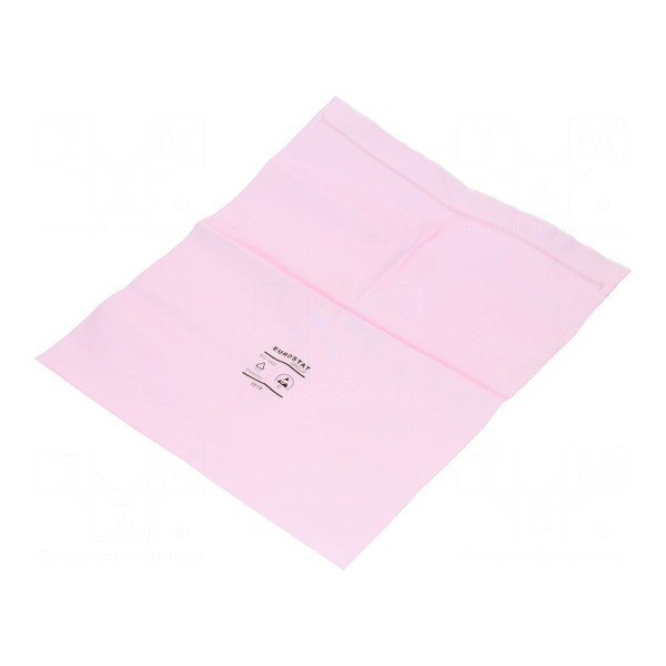 Wyrób jest zgodny z normą IEC 61340-5-1, co potwierdza jego parametry w zakresie ochrony ESD. Torebka występuje w kolorze różowym i przeznaczona jest do przechowywania oraz transportu komponentów elektronicznych wymagających zabezpieczenia przed elektrycznością statyczną.