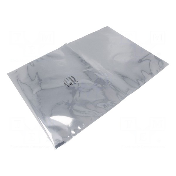 Torebka ochronna ESD typu ekranującego została wykonana z metalizowanej folii, zapewniając ochronę podzespołów przed wyładowaniami elektrostatycznymi. Wymiary użytkowe produktu wynoszą 457mm długości oraz 305mm szerokości, przy grubości materiału 76µm.