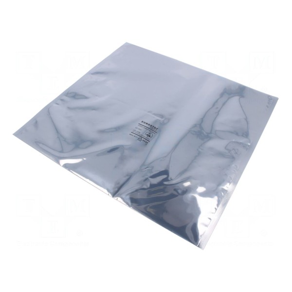 Torebka ochronna typu ESD to ekranujący produkt wykonany z metalizowanej folii, przeznaczony do zabezpieczania komponentów wrażliwych na wyładowania elektrostatyczne. Wymiary zewnętrzne arkusza wynoszą 356mm na 356mm, a grubość warstwy folii wynosi 76µm.