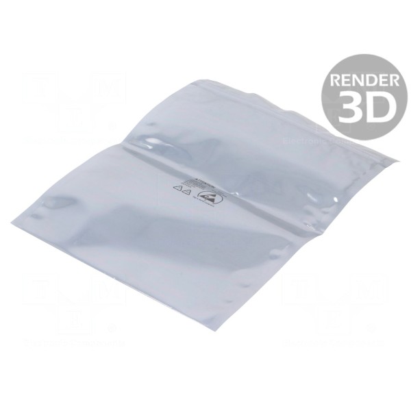 Torebka ochronna ESD o wymiarach 457mm długości oraz 356mm szerokości przeznaczona jest do zabezpieczania elementów wrażliwych na wyładowania elektrostatyczne. Wykonana została z metalizowanej folii o grubości 76µm, która zapewnia właściwości ekranujące. Produkt jest zgodny z wymaganiami normy IEC 61340-5-1.