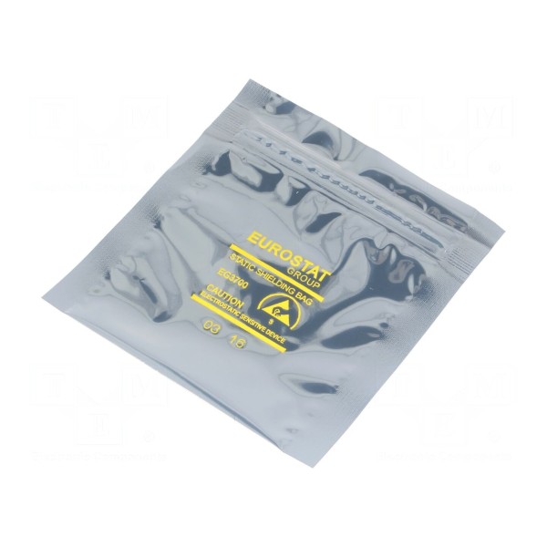 Konstrukcja torebki wyposażona jest w zapięcie strunowe, które umożliwia wielokrotne otwieranie i zamykanie opakowania. Wykorzystane materiały oraz parametry techniczne zapewniają zgodność z wymaganiami normy IEC 61340-5-1 dotyczącej ochrony urządzeń elektronicznych przed zjawiskami elektrostatycznymi.