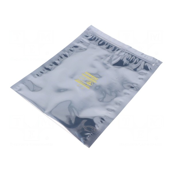 Torebka ochronna typu ESD o wymiarach 203mm długości oraz 152mm szerokości przeznaczona jest do zabezpieczania podzespołów wrażliwych na wyładowania elektrostatyczne. Produkt wykonano z metalizowanej folii, która pełni funkcję ekranującą. Grubość ścianki wynosi 76µm.