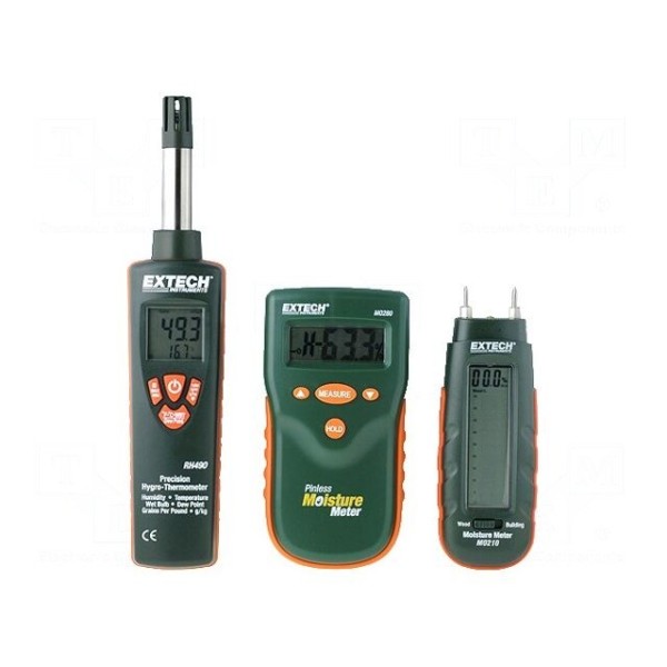 Zestaw pomiarowy warunków środowiskowych służy do kompleksowej kontroli parametrów powietrza oraz wilgotności materiałów. W skład kompletu wchodzą miernik do bezinwazyjnego pomiaru wilgotności MO280, miernik wilgotności MO210 oraz termohigrometr RH490.