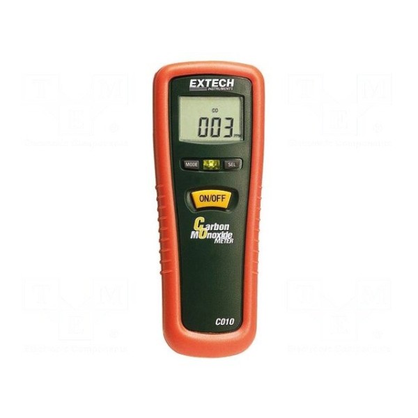 Miernik EXTECH CO10 służy do monitorowania stężenia tlenku węgla w otoczeniu. Zakres pomiarowy urządzenia wynosi od 0 do 1000ppm, przy rozdzielczości pomiaru na poziomie 1ppm.
