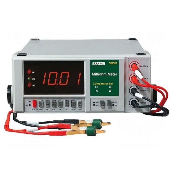 Miliomomierz przeznaczony jest do precyzyjnych pomiarów rezystancji w szerokim zakresie od 0,01mΩ do 20kΩ. Urządzenie wyposażone jest w wyświetlacz LED o rozdzielczości 3,5 cyfry (1999) oraz wbudowany komparator z diodowym wskaźnikiem wartości MIN/MAX/ŚRED. Napięcie pomiarowe wynosi 5V, a dokładność pomiaru rezystancji określona jest na poziomie ±(0,2%+4 cyfry).