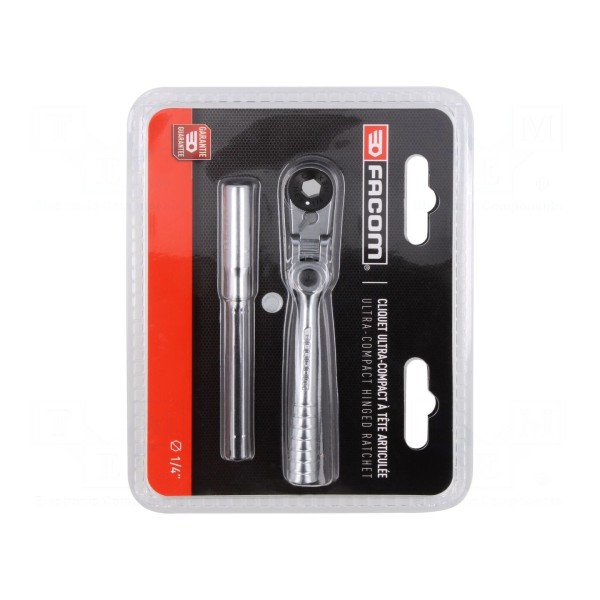 Klucz typu grzechotka FACOM R.180PB wyposażony jest w gniazdo uchwytu o rozmiarze 1/4". Konstrukcja narzędzia opiera się na mechanizmie posiadającym 60 zębów, co umożliwia pracę w ograniczonych przestrzeniach.