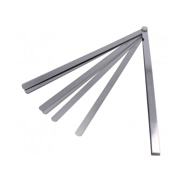 Narzędzie przeznaczone jest do precyzyjnego pomiaru szczelin. Model ten składa się z 19 elementów o metrycznym oznaczeniu wymiarów.