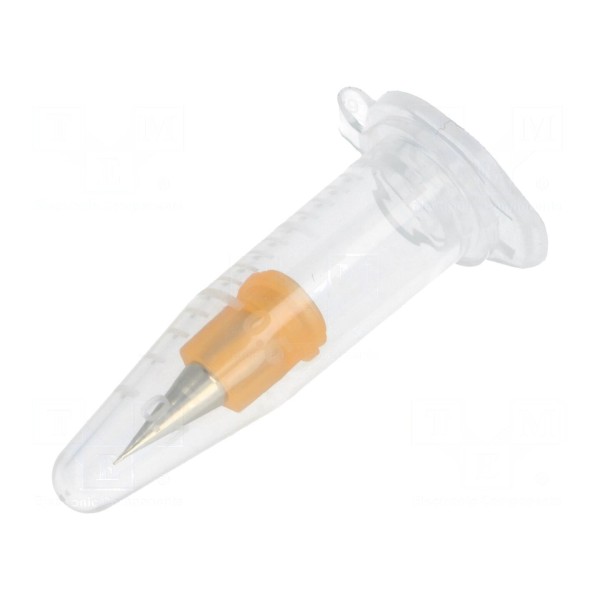 Dysza dozownicza o średnicy wewnętrznej 0,11 mm została zaprojektowana do współpracy z dozownikami oraz strzykawkami. Element charakteryzuje się pomarańczowym kolorem korpusu oraz standardowym systemem mocowania typu Luer Lock.